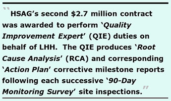HSAG’s second $2.7 million contract was awarded to perform “Quality Improvement Expert” (QIE) duties on behalf of LHH that were required as a mandatory provision of CMS’ “LHH Settlement Agreement.” that was adopted on November 10, 2022. The QIE produces “Root Cause Analysis” (RCA) and corresponding “Action Plan” corrective milestone reports following each successive “90-Day Monitoring Survey” site inspections. The QIE’s first RCA report clearly and rightfully revealed that LHH had been decertified for running Laguna Honda as if it were an acute-care hospital, rather than as a Skilled Nursing Facility (SNF), and not following CMS regulations applicable to nursing homes.