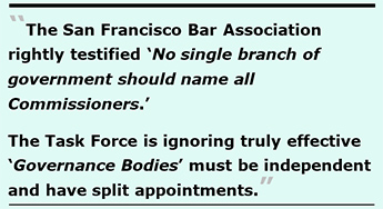 The Task Force is ignoring that truly effective “Governance Bodies” must be independent and have split appointments.
