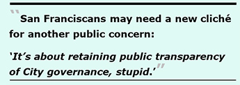 But at this point, San Franciscans may need a new cliché for another public concern: “It’s about retaining public transparency of City governance, stupid.” Savvy readers of San Francisco’s political corruption know all too well that without robust transparency of our City’s Boards and Commissions, City Hall will throw open its doors to public corruption. Just think of the Mohammed Nuru scandal in 2020 involving the Department of Public Works that lead to Nuru’s seven-year Federal prison sentence.